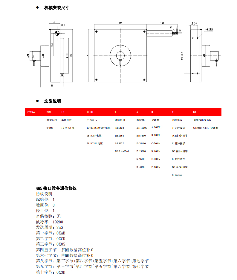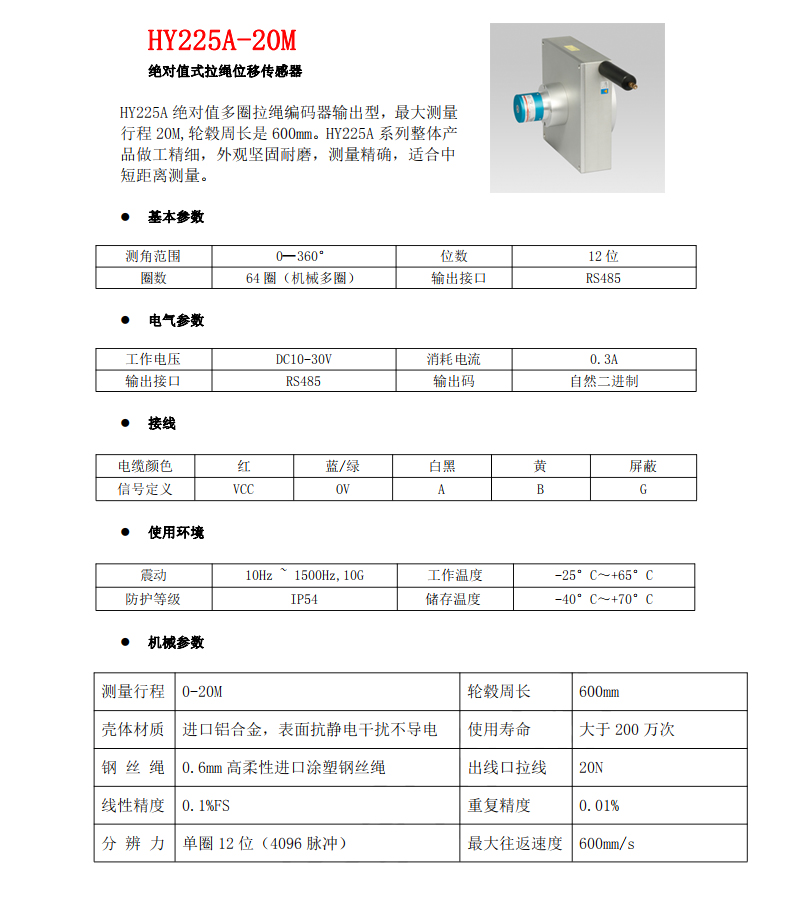HY225A-20M 多圈絕對(duì)值拉線編碼器