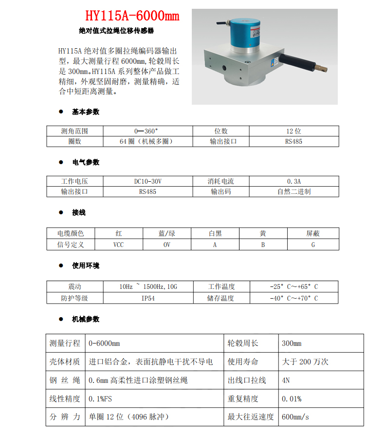 HY115A-6000mm多圈絕對(duì)值拉線編碼器