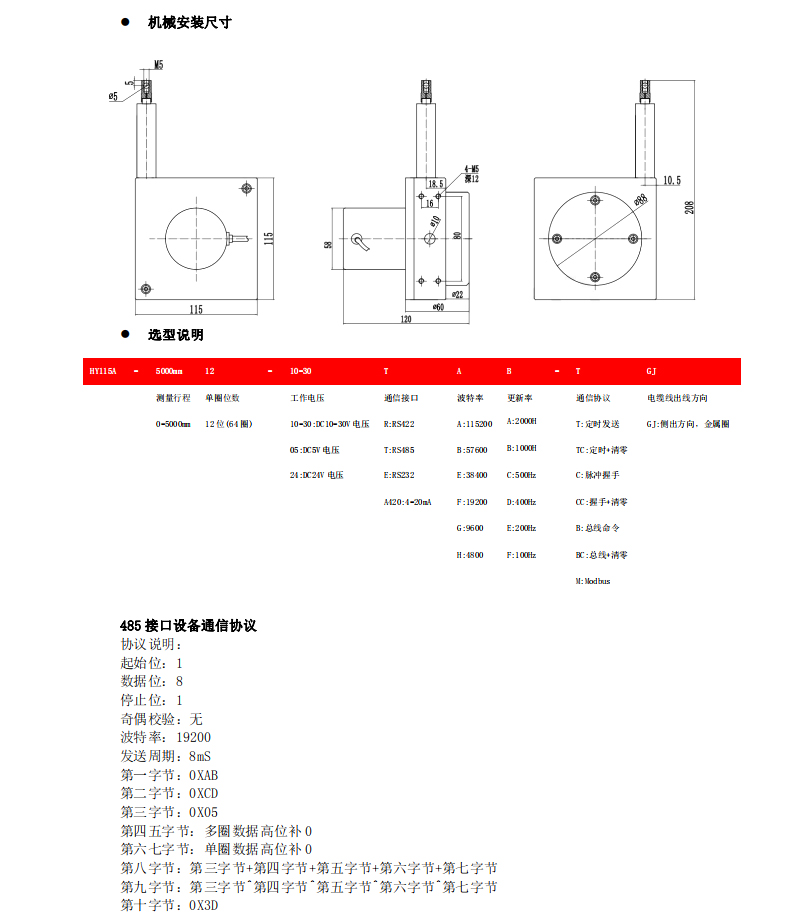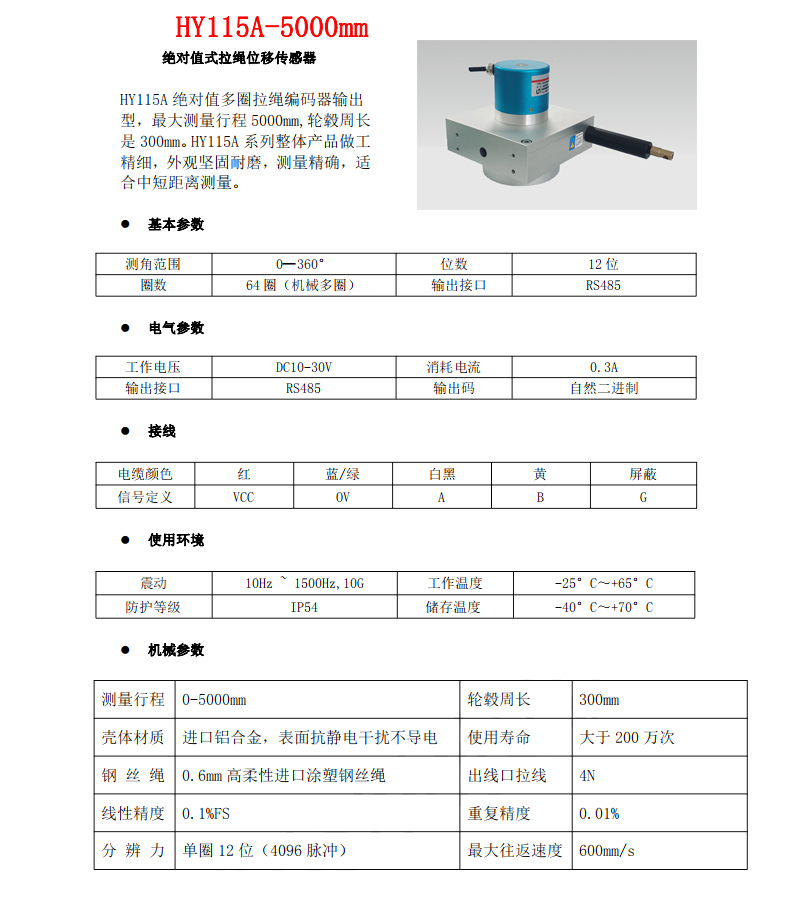 HY115A-5000mm多圈絕對值拉線編碼器