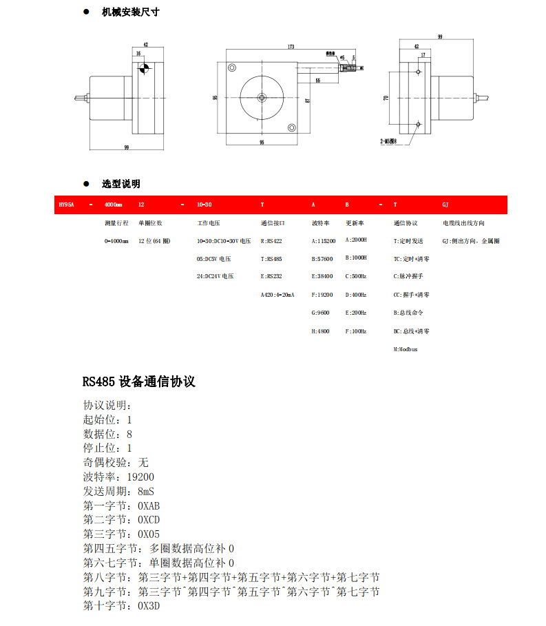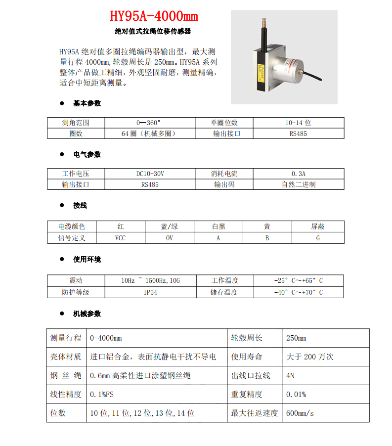 HY95A-4000mm多圈絕對值拉線編碼器
